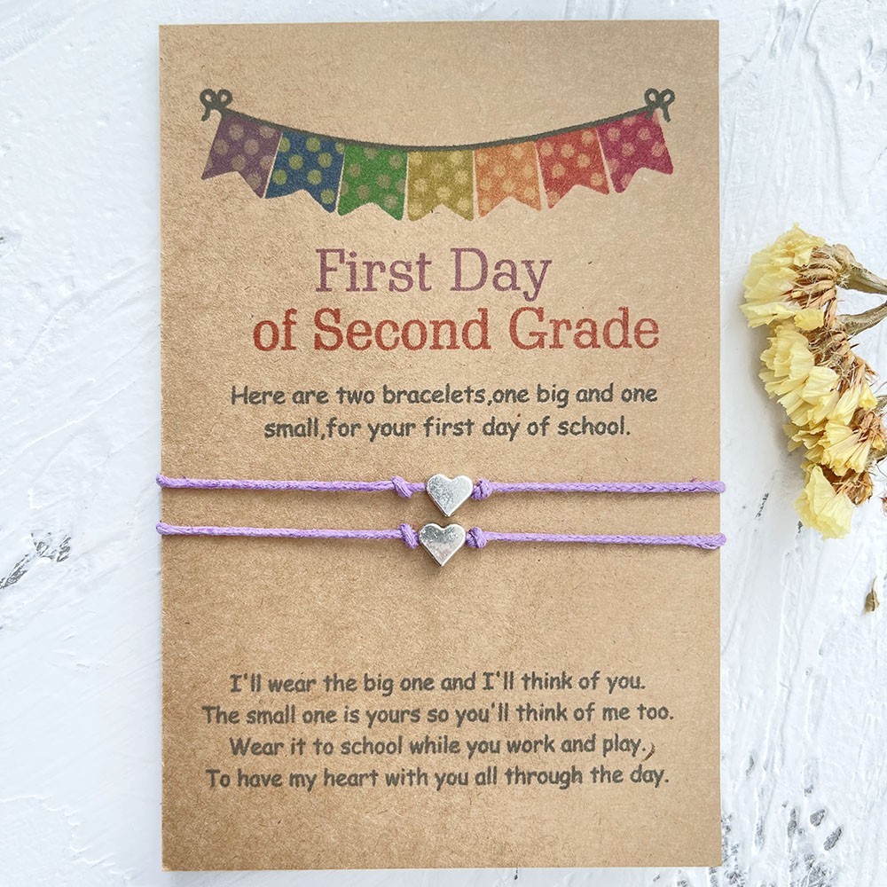 Back to School Bracelet First Day of Second Grade Heart Wish Gift for Kid Set of 2