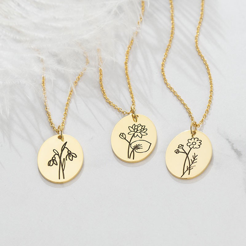 Custom Birth Flower Necklaces For Her January Snowdrop