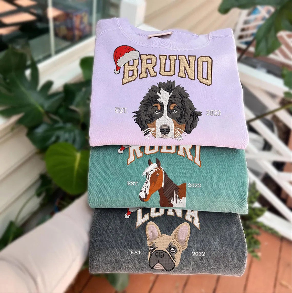 Show off your love for your furry best friend with our custom pet face sweatshirt, hoodie, or T-shirt! Our Custom Dog Cat Face and Name Embroidered clothing is the perfect gift for any dog mom or dad! Featuring a personalized dog portrait from your pet’s photo, this sweatshirt is a heartfelt way to keep your furry friend close.