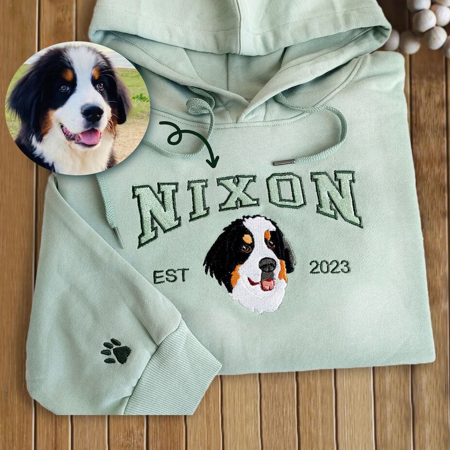 Show off your love for your furry best friend with our custom pet face sweatshirt, hoodie, or T-shirt! Our Custom Dog Cat Face and Name Embroidered clothing is the perfect gift for any dog mom or dad! Featuring a personalized dog portrait from your pet’s photo, this sweatshirt is a heartfelt way to keep your furry friend close.