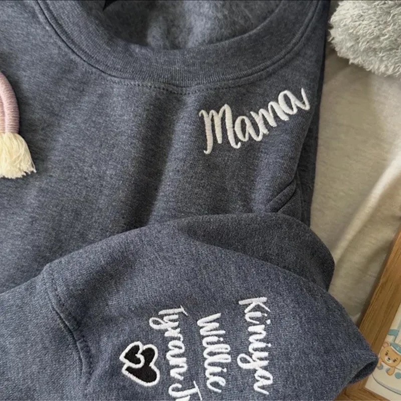 Cherish motherhood with our Custom Embroidered Mama Sweatshirt, featuring your kids’ names on the sleeves for a personal touch. This minimalist and stylish sweater is the perfect Mother’s Day gift, blending comfort and love in every stitch. Make mom’s day extra special with a wearable keepsake!