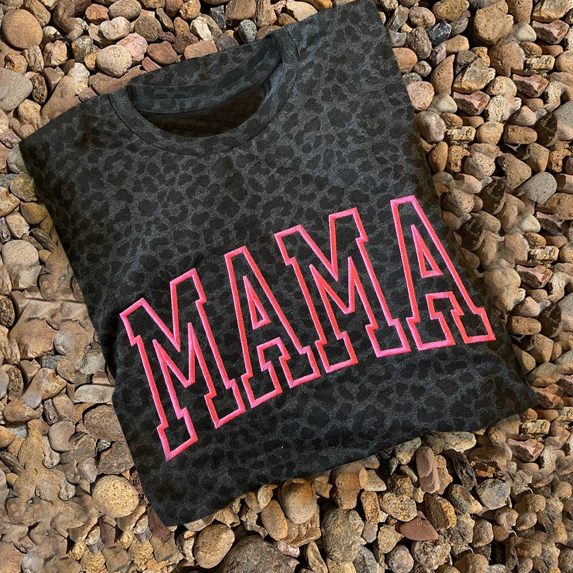 Custom Embroidered Leopard Mama Shirt For Mother's Day Gift