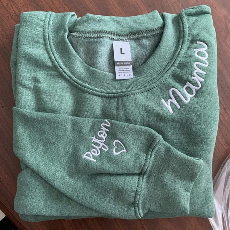 Custom Embroidered MAMA Sweatshirt With Kids Name On Sleeve For Mom Grandma Christmas Gift