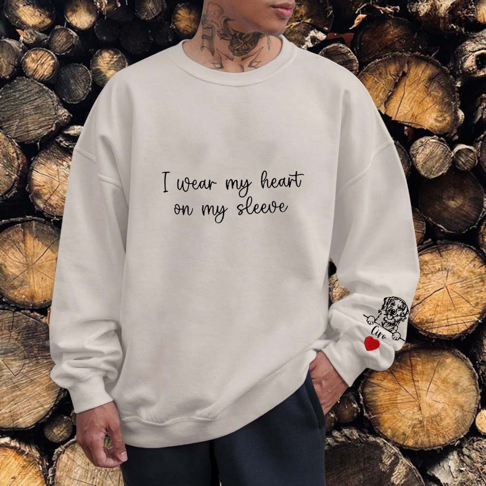 Custom I Wear My Heart On My Sleeve Embroidered Pet Portrait Sweatshirt Hoodie