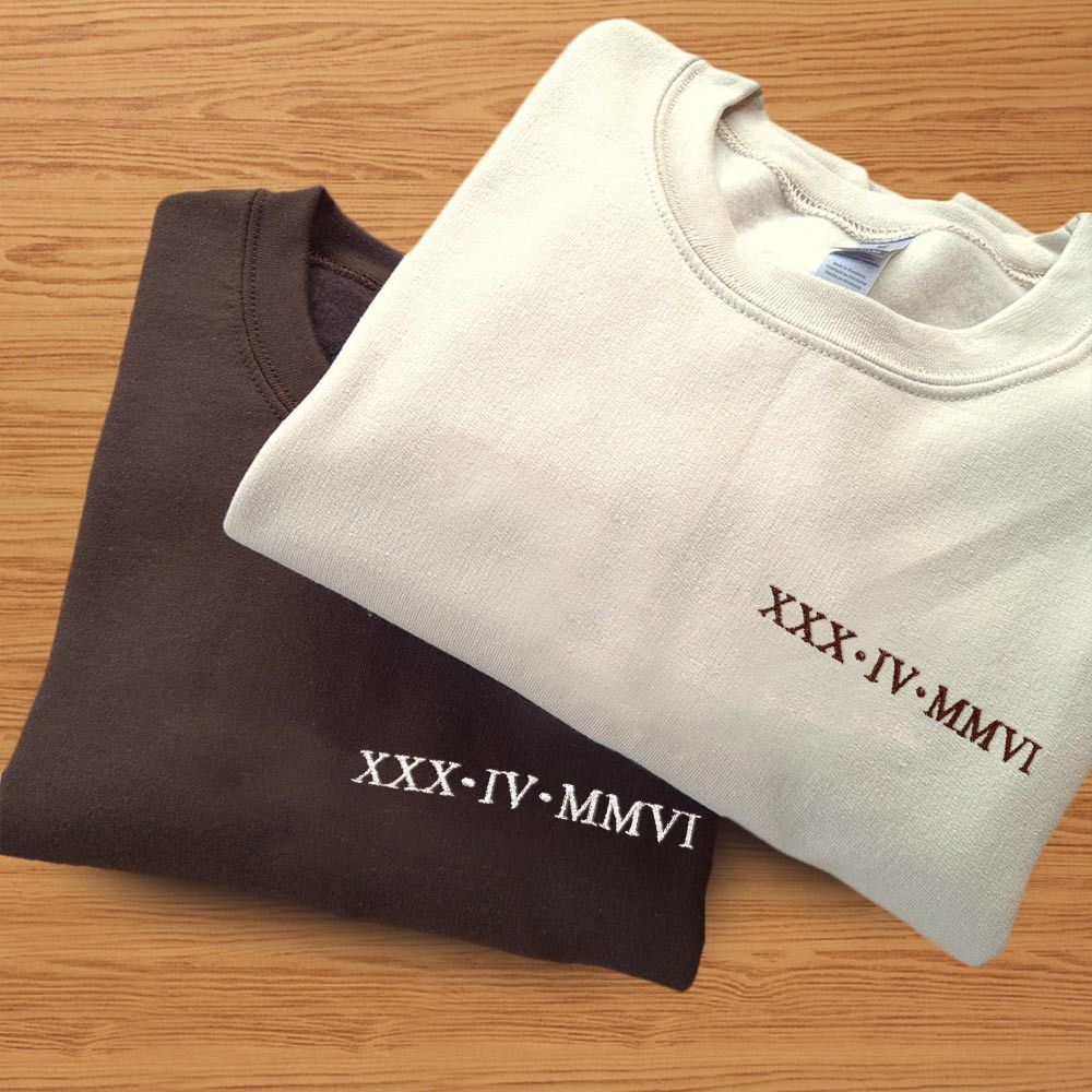 Custom Embroidered Roman Numeral Sweatshirt Hoodie With Initial On Sleeve For Couple Valentine's Day Anniversary