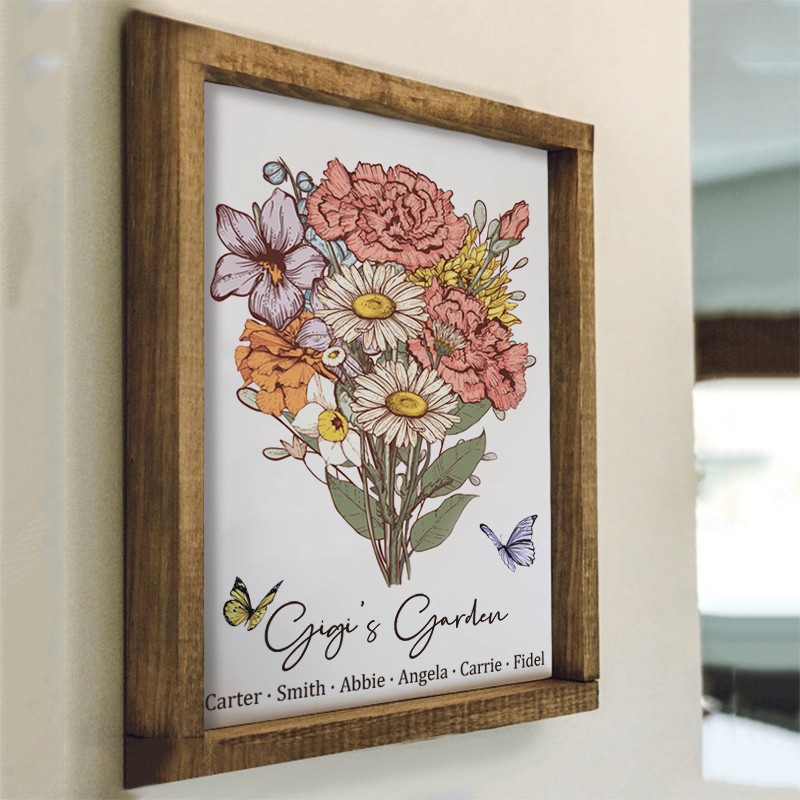 Custom Gigi's Garden Birth Flower Bouquet Art Wood Sign For Mum Grandma Christmas Gift Ideas