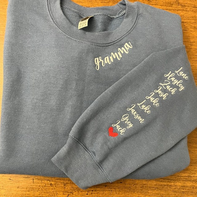 Custom Embroidered Grandma Sweatshirt Hoodie with Kids Names For Mother's Day Gift Ideas