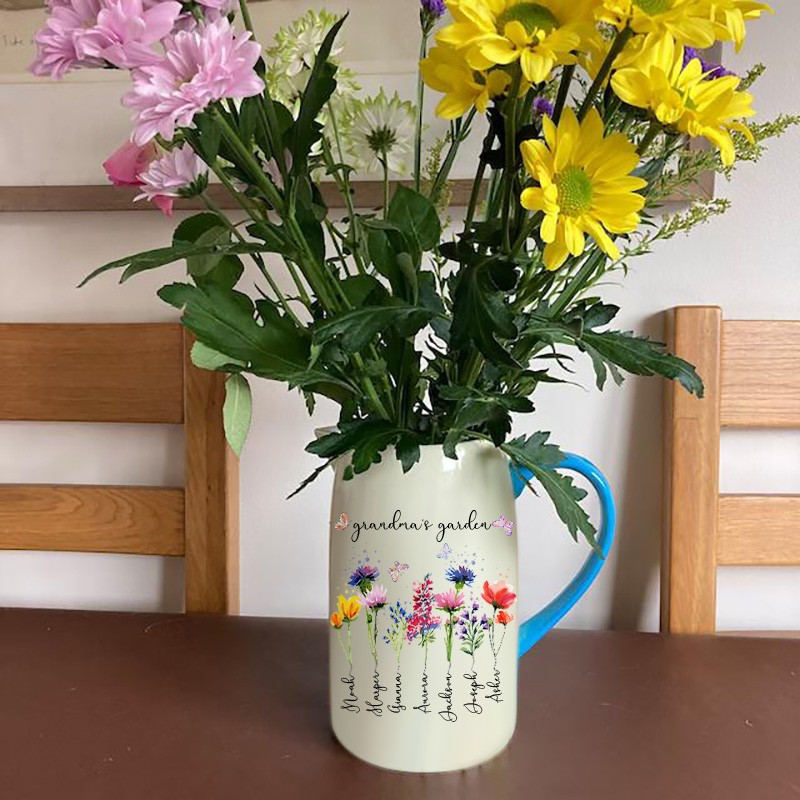 Custom Grandma's Garden Vase With Grandkids Name and Birth Flower For Mother's Day Christmas