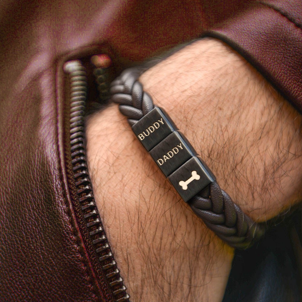 Custom Men's Engraved Bracelet With Pet Paws For Pet Lovers Daddy Father's Day