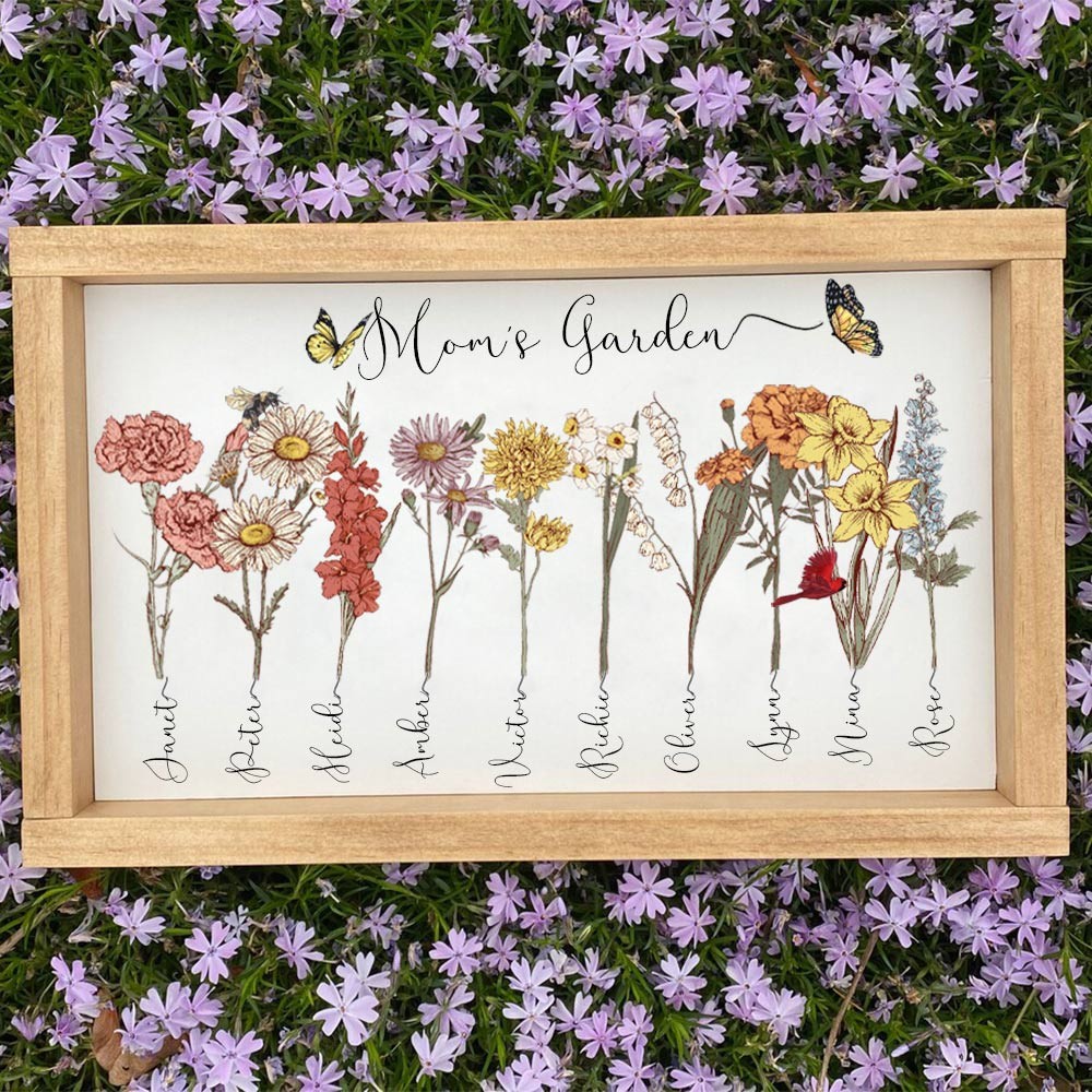 Custom Mum's Garden Birth Flower Wood Sign With Kids Name For Mum Grandma Mother's Day Gift Ideas