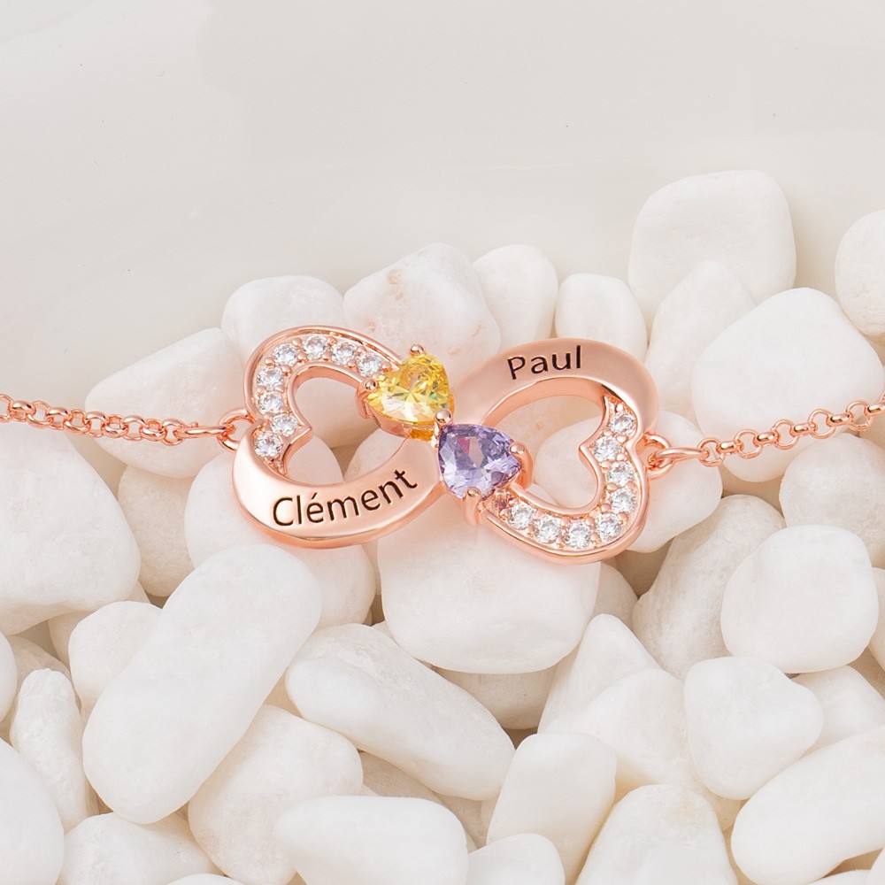 Custom Heart Bracelet with Her and Him Name and Birthstone, Couple Gift Ideas for Valentine's Day, Anniversary, or Birthday!