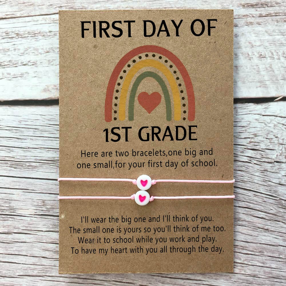First Day of 1st Grade Bracelets Back to School Mummy and Me Anxiety Separation Wish Gifts For Kid Set of 2
