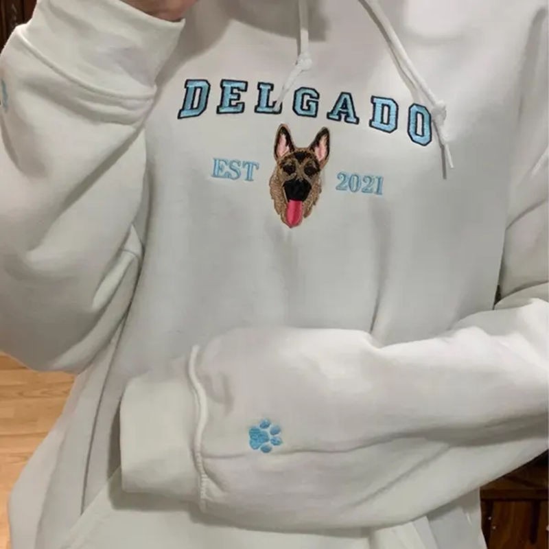 Show off your love for your furry best friend with our custom pet face sweatshirt, hoodie, or T-shirt! Our Custom Dog Cat Face and Name Embroidered clothing is the perfect gift for any dog mom or dad! Featuring a personalized dog portrait from your pet’s photo, this sweatshirt is a heartfelt way to keep your furry friend close.