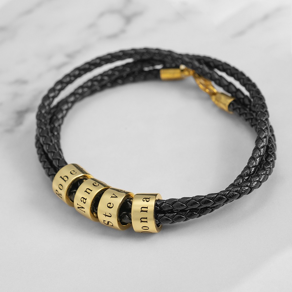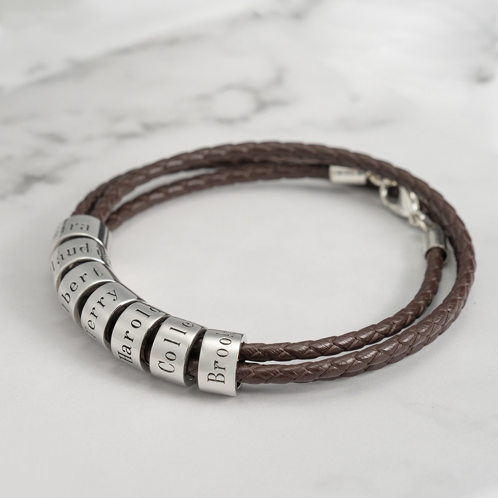 Personalised Beads Engraving Name Leather Bracelets With 1-10 Beads Gifts for Him