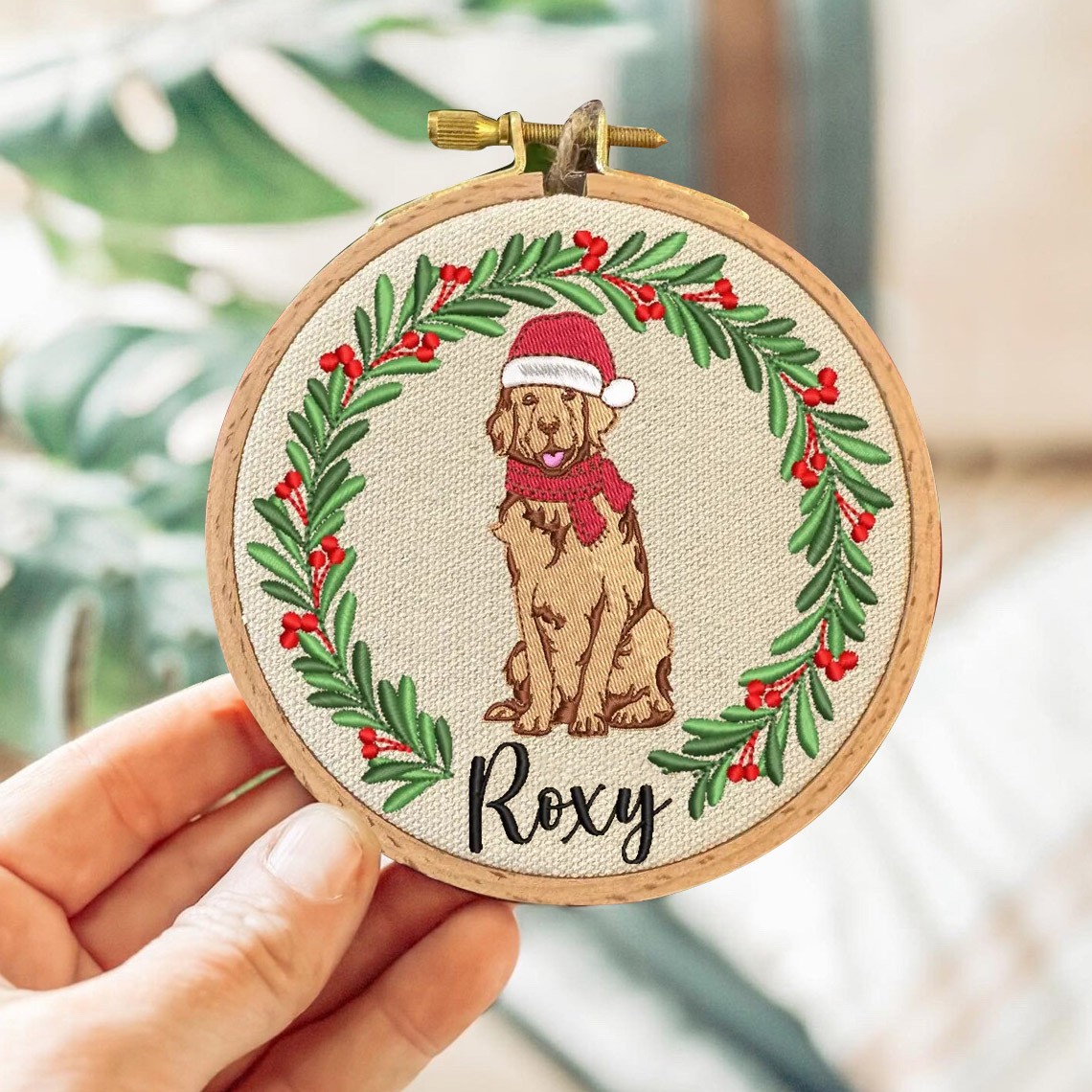 Personalised Embroidered Dog Portrait Photo Ornament With Name For Pet Lovers Christmas Gift