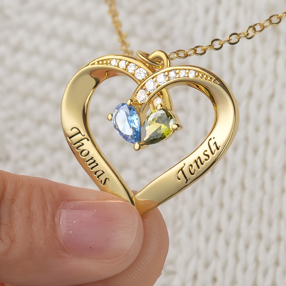 Personalised Birthstone Necklace with 2 Birthstones and 2 Names