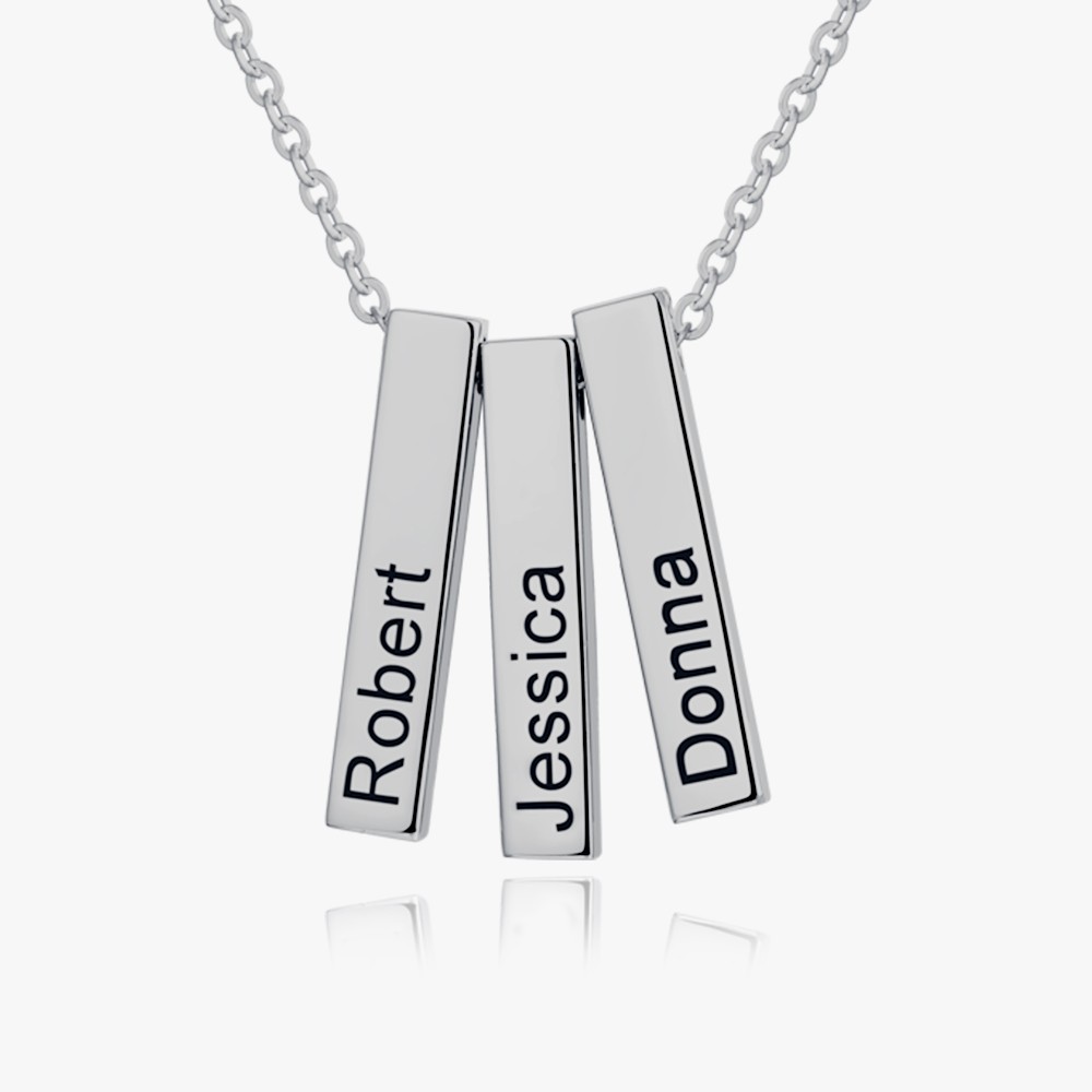 Silver Personalised Vertical Short 1-3 3D Engraved Bar Name Necklace