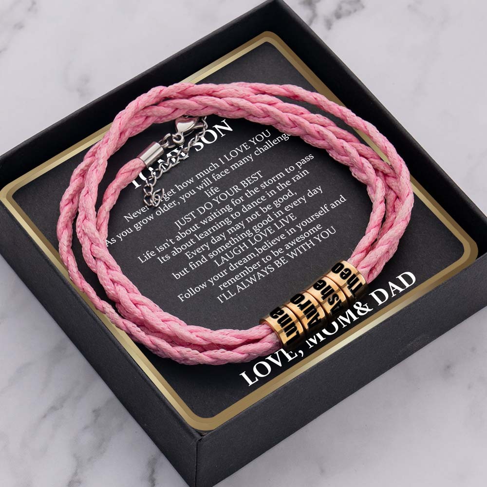 To My Son Personalised Pink Beaded Name Bracelet From Dad Gift